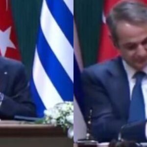 Një video e kryeministrit grek, Kyriakos Mitsotakis po bën xhiron e rrjetit pas një veprimi të tij gjatë një konference të përbashkët për shtyp me presidentin turk…
