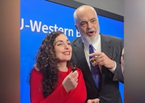 Në videon e shpërndarë nga Osmani në Facebook shfaqet edhe kryeministri Edi Rama, i cili vlerëson përpjekjet titanike të presidentes për heqjen e sanksioneve të vëna ndaj Kosovës nga Unioni në verën e vitit 2023.